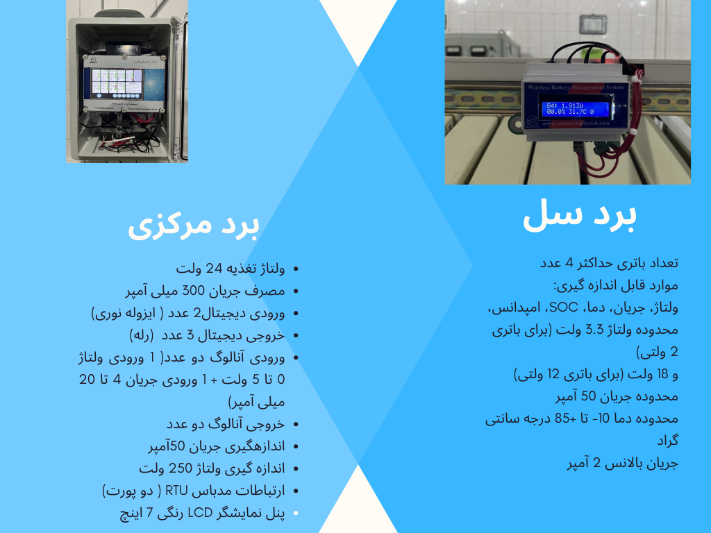 - ارتباط مرکزی به صورت Wireless و یا Modbus برد سل و برد